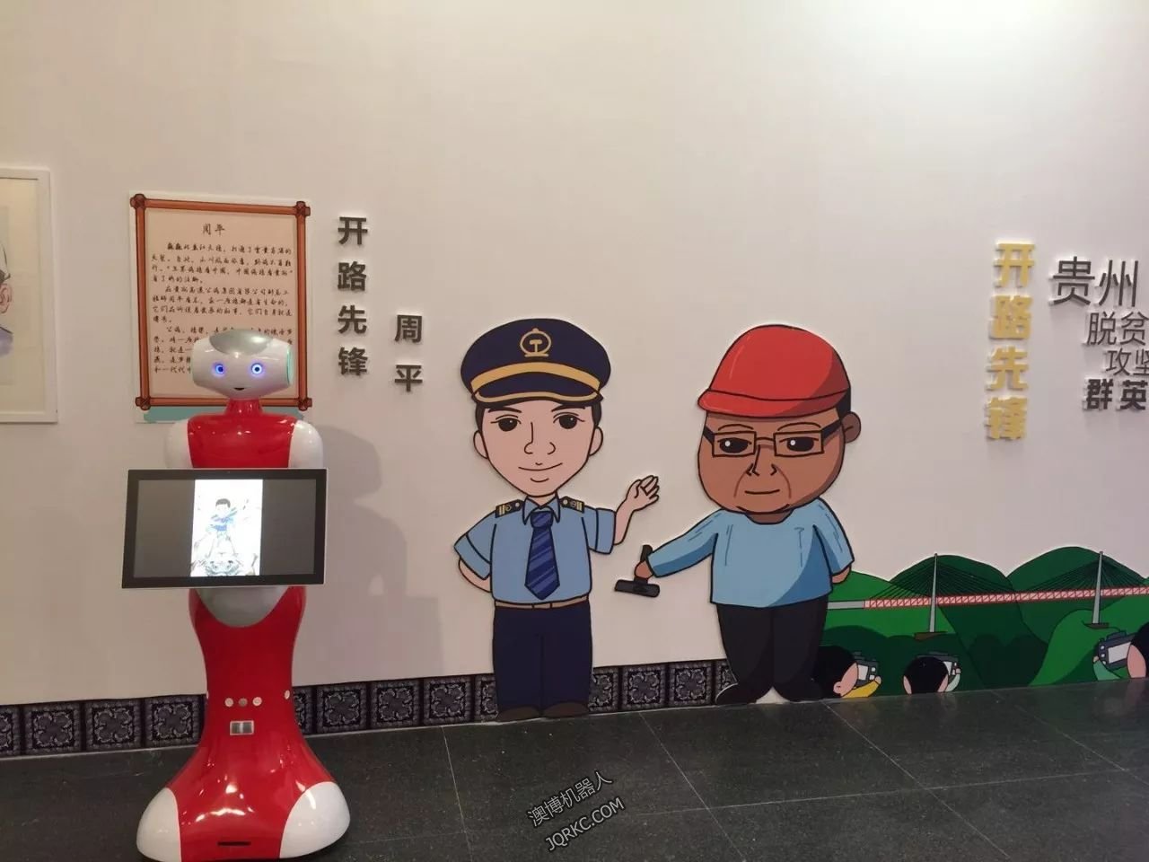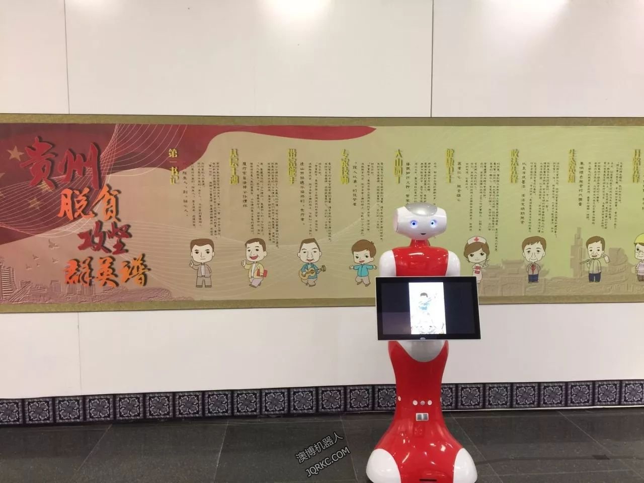 由貴州省委宣傳部主辦的貴州脫貧攻堅群英譜漫畫展在11日正式開展,本次畫展是由全國漫畫愛好者以及貴州青少年創(chuàng)作的貴州脫貧攻堅群英譜漫畫作品。澳博機器人佩佩被特聘為機器人講解員