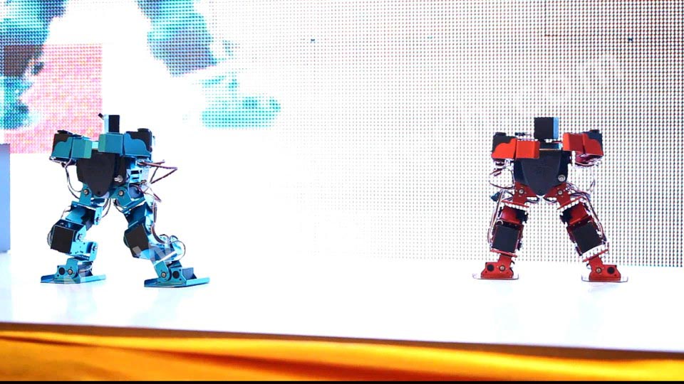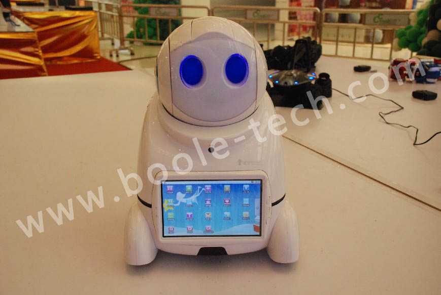 小型舞蹈機器人,是本場表演的重點,它能表演俯臥撐、仰臥起坐、前滾翻、后滾翻,表演節目:俏夕陽(舞蹈)、街舞、南非世界杯舞蹈;而最激動人心的還是火熱的江南style舞蹈,更有小朋友跟著舞蹈和機器人一起跳了起來。