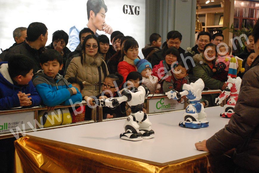 201311927日,河南鄭州西元國際廣場聯合“博樂機器人表演”舉辦了名為“未來機器人展”主題活動,為鄭州市民帶來了別樣的表演。此次機器人展影響整個鄭州,來觀賞的都是莫名而來一展眼福,現場有新聞電視記者前來采訪,更有電視臺劇組拍攝的電視劇“小龍人奇遇記”在現場取景拍攝。這次的機器人的演出給廣場帶來了極大的人氣,孩子們都流連忘返。