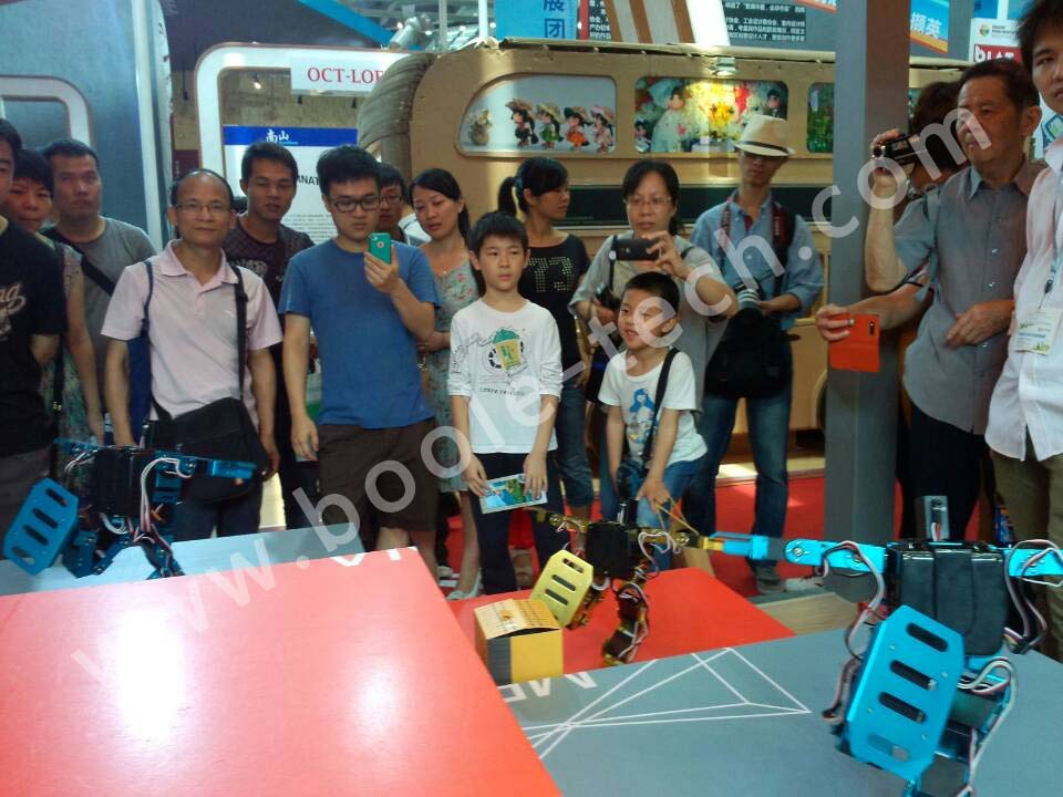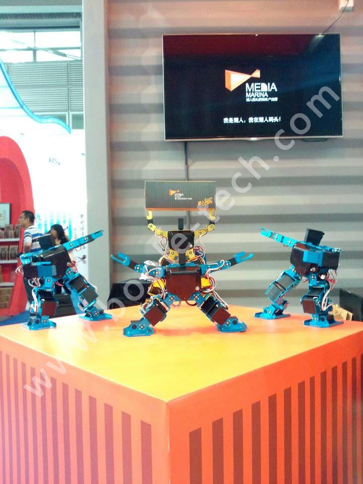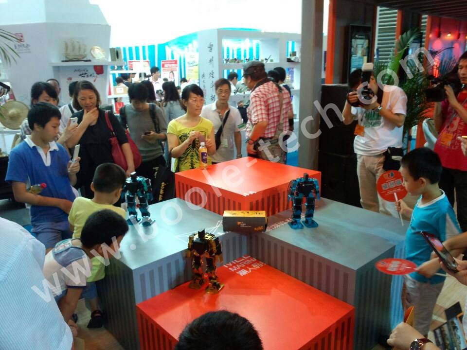 應(yīng)參展商邀請,我們共推出多款智能機器人,助陣“潮人碼頭”參展商,多臺舞蹈機器人一起跳舞,吸引了現(xiàn)場很多游客圍觀,同時也有不少電視臺記者采訪,“機器人表演”成為了展會中一個亮點。