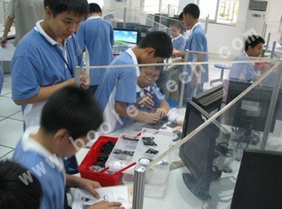 同學們正在專心制作機器人