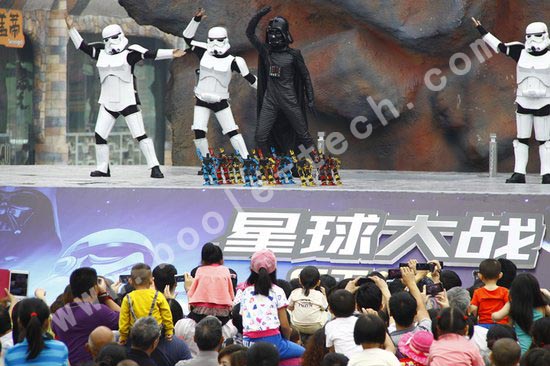 201361,位于重慶永川的樂和樂都主題公園聯合“博樂機器人表演”給孩子們送上了一份特別的六一兒童節禮物。活動以電影《星球大戰》作為故事背景,外星人入侵地球作為主題,配合高科技機器人,獻上了一場精彩的表演。