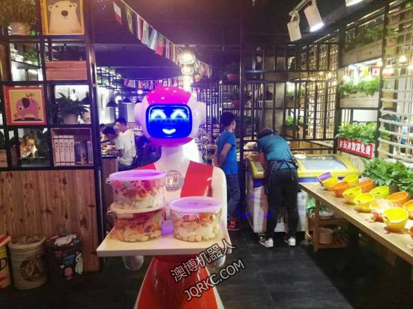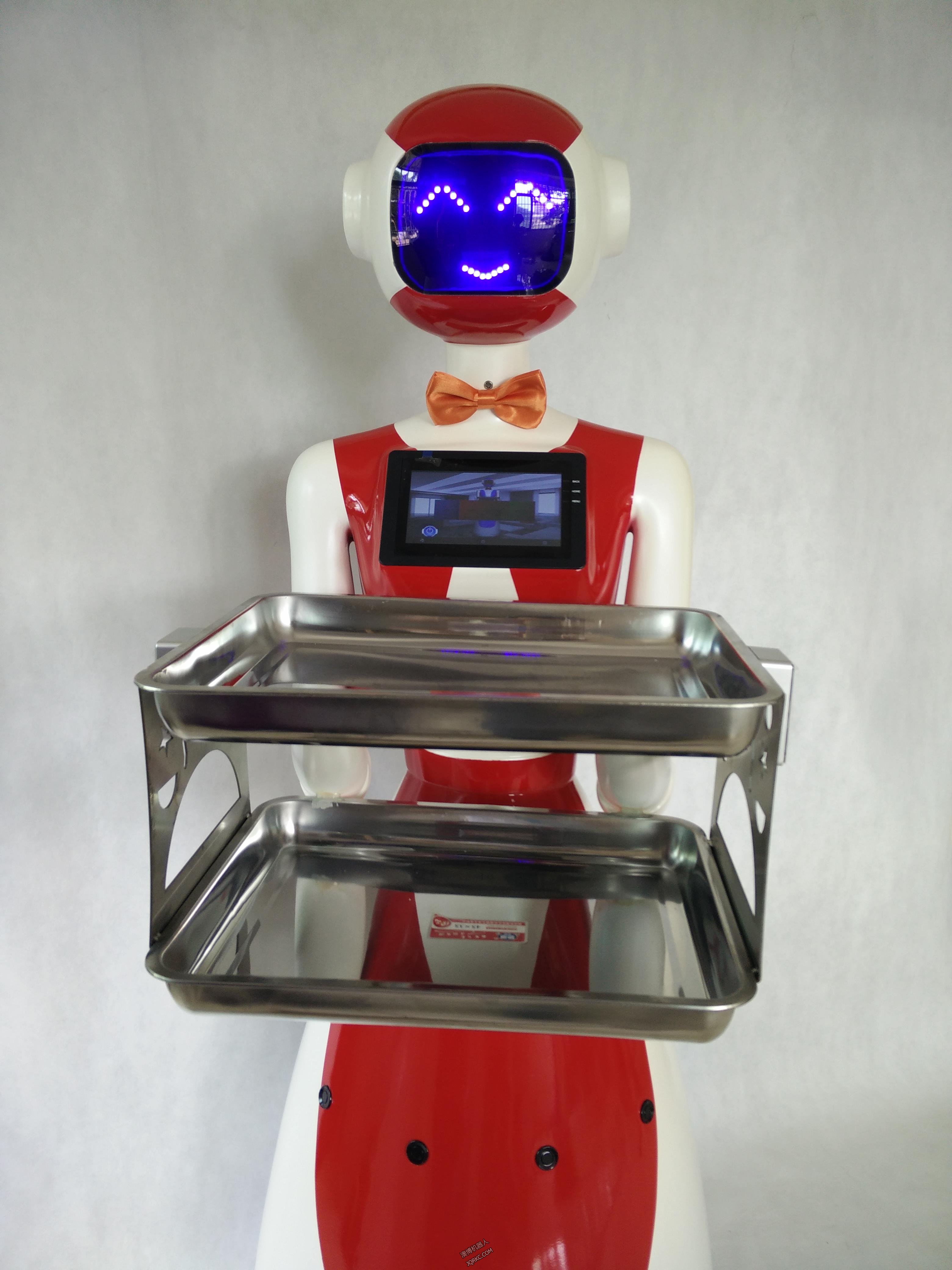 送餐機器人外殼主要材料有玻璃鋼、亞克力、塑料等??稍诓蛷d、房地產銷售中心、KTV、酒店、會所、慶典、婚慶、 晚會、展會、商場等場所用來迎賓、送餐、導購、送茶、送鮮花、送傳單、送禮品、送禮品在舞臺上和主持人互動節目、送婚禮戒指和主持婚禮、頒獎和主持頒獎等。